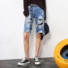 2017新款女装夏季BF风牛仔短裤女渔网破洞五分裤宽松乞丐中裤潮