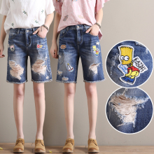 2017夏季新款大码牛仔短裤女个性贴布直筒宽松休闲破洞五分裤学生