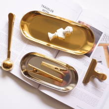 ins出口北欧HAY同款黄铜金色托盘不锈钢收纳盘书夹咖啡勺封口夹
