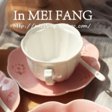 特价!樱花季。出口高品质樱花粉色浮雕色釉陶瓷茶杯碟咖啡杯碟