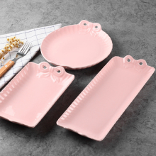 出口陶瓷餐具 欧式特色浮雕盘粉色西餐盘蝴蝶结盘子早餐盘蛋糕盘