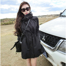 欧洲站2017春季新款时尚中长款风衣女修身薄款长袖韩版连帽外套女