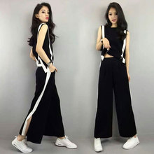 2017夏装新款无袖上衣休闲显瘦两件套夏季时尚阔腿裤套装女气质潮