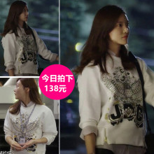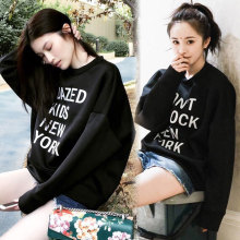 韩国春季明星同款圆领宽松韩版潮长袖印花加绒卫衣女套头短款上衣