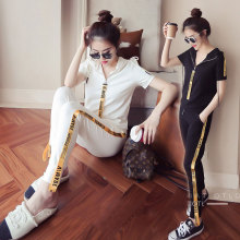 欧洲站2017夏季新款休闲运动服套装女韩版长裤短袖显瘦时尚两件套