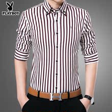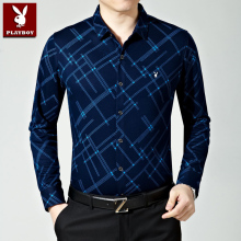 花花公子2017春装新款男士宽松长袖衬衫时尚薄款衬衣男爸爸装
