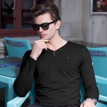 【天天特价】花花公子春款V领t恤长袖薄款纯色修身韩版打底衫潮男