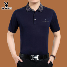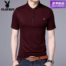 夏季花花公子新款短袖t恤男中年翻领纯色针织衫宽松大码爸爸装男