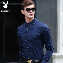 花花公子男士长袖衬衫2017春季新款韩版修身长袖时尚男式衬衣男装