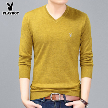 冬季新款纯色羊绒衫男V领套头毛衣花花公子正品鸡心领针织羊毛衫
