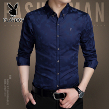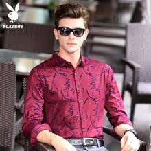 【天天特价】花花公子2016秋季新款印花衬衫男长袖 修身时尚衬衣