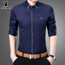 花花公子男装2017春季新款男士长袖丝光棉衬衫免烫纯棉薄款衬衣男