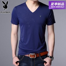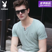 花花公子短袖T恤男 2017夏季新款纯棉体恤 时尚V领修身薄款男装潮