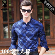 花花公子2016秋新款男士衬衫丝光棉长袖商务休闲宽松衬衣特价包邮