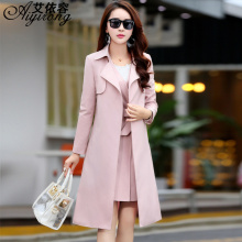 秋季两件套风衣女中长款英伦外套长袖气质修身春秋套装背心裙潮