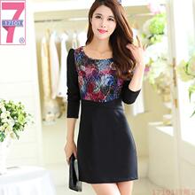 时尚印花连衣裙长袖2017春季新款女装裙子显瘦气质中裙韩版修身