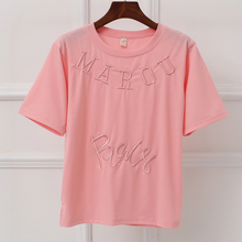 t恤女短袖白色宽松韩版字母纯色圆领半截袖上衣刺绣体恤衫女夏装