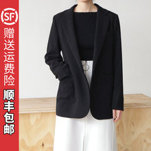中长款韩版小西装2017春秋新款纯色修身西装领百搭上衣西服外套女