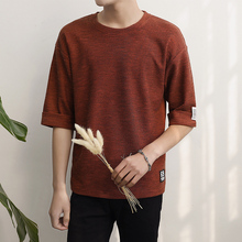 2017春夏男装七分袖T恤韩版日系宽松休闲五分半袖衫圆领中袖短袖t