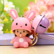韩国创意礼品可爱铃铛蒙奇奇钥匙挂件汽车钥匙扣女包挂饰钥匙链圈