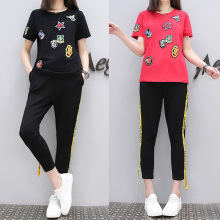 大码女装胖MM夏装短袖T恤宽松显瘦套装胖妹妹九分裤两件套200斤潮