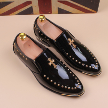 库琪春秋铆钉英伦复古潮流男鞋克罗心欧版漆皮亮布洛克发型师皮鞋