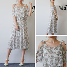 2017夏季新款韩版度假风漏肩短袖吊带碎花连衣裙沙滩裙大摆裙
