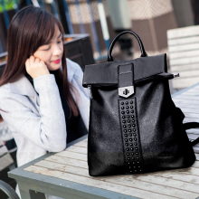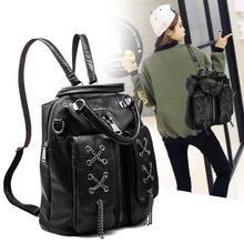 双肩包女包2017新款时尚柳钉韩版百搭朋克风潮流女背包包旅行背包