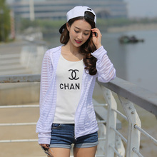 2017夏季新款条纹防晒衣长袖连帽短款薄款透气防晒衫百搭运动外套