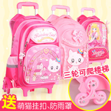 儿童拉杆书包三轮可爬楼小学生书包女生1-3-6年级可拆卸手拉书包