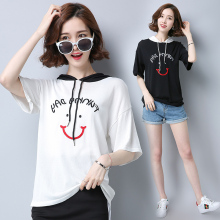 时尚简单连帽显瘦冰丝t恤半袖女针织短袖2017新款薄款上衣夏季