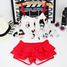 韩国可爱印花钢托聚拢裙式分体修身显瘦遮肚少女学生保守 泳衣女