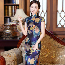 2017春夏旗袍 重磅桑蚕丝真丝旗袍裙 长款旗袍复古修身宴会长礼服