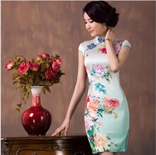 娇兰 真丝旗袍裙 2017新款复古民族风桑蚕丝低开叉修身气质短旗袍