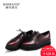 柯玛妮克 秋季擦色牛皮时尚女鞋 新款杏头系带厚底深口单鞋