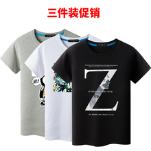 夏季纯棉短袖t恤男韩版学生圆领宽松大码体恤字母印花男装上衣潮