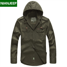 吉普 盾秋冬纯棉水洗大码工装男士休闲连帽长袖男款夹克衬衫外套