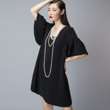SYU HAN原创设计 女人味露背荷叶袖子V领A型连衣裙 黑白两色