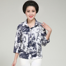 棉麻衬衫女长袖2017春装新款韩版宽松中年女士衬衣大码七分袖上衣