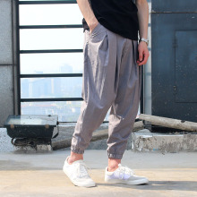 夏季超薄裤子小脚休闲裤男宽松九分裤纯色萝卜裤9分哈伦男裤薄款