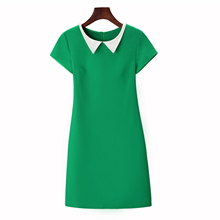 2017新款韩版女装娃娃领短袖大码宽松A字裙子夏季中长款连衣裙女