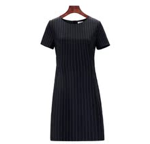 2017夏季女装新款连衣裙女士修身通勤中长款大码条纹短袖职业裙子