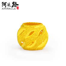 阿米路黄金转运珠24k足金路路通圆形磨沙转运珠手链戒指男女款