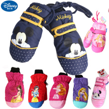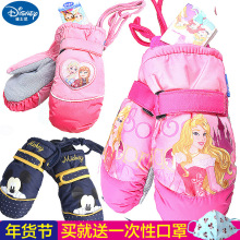 迪士尼儿童手套冬男童女童挂绳公主滑雪手套小孩宝宝保暖防水手套