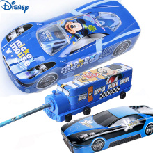 迪士尼米奇男童双层铁笔盒小学生汽车造型款文具笔盒读书架铅笔盒