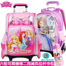 迪士尼公主拉杆书包小学生女 1-6年级六轮爬楼梯冰雪女童双肩背包