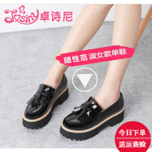 卓诗尼单鞋2017新款漆皮厚底松糕鞋英伦学生女鞋夏款套脚高跟皮鞋