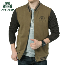 AFS JEEP战地吉普春秋新款立领卫衣毛线拼接袖男士开衫外套卫衣男