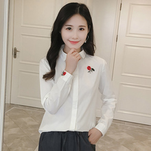 2017春装新款衬衫女长袖韩版白色打底衬衣刺绣小清新百搭显瘦上衣