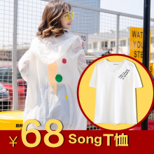 露肩短袖t恤女夏季简单百搭个性韩范宽松学生V领纯棉白色体恤上衣